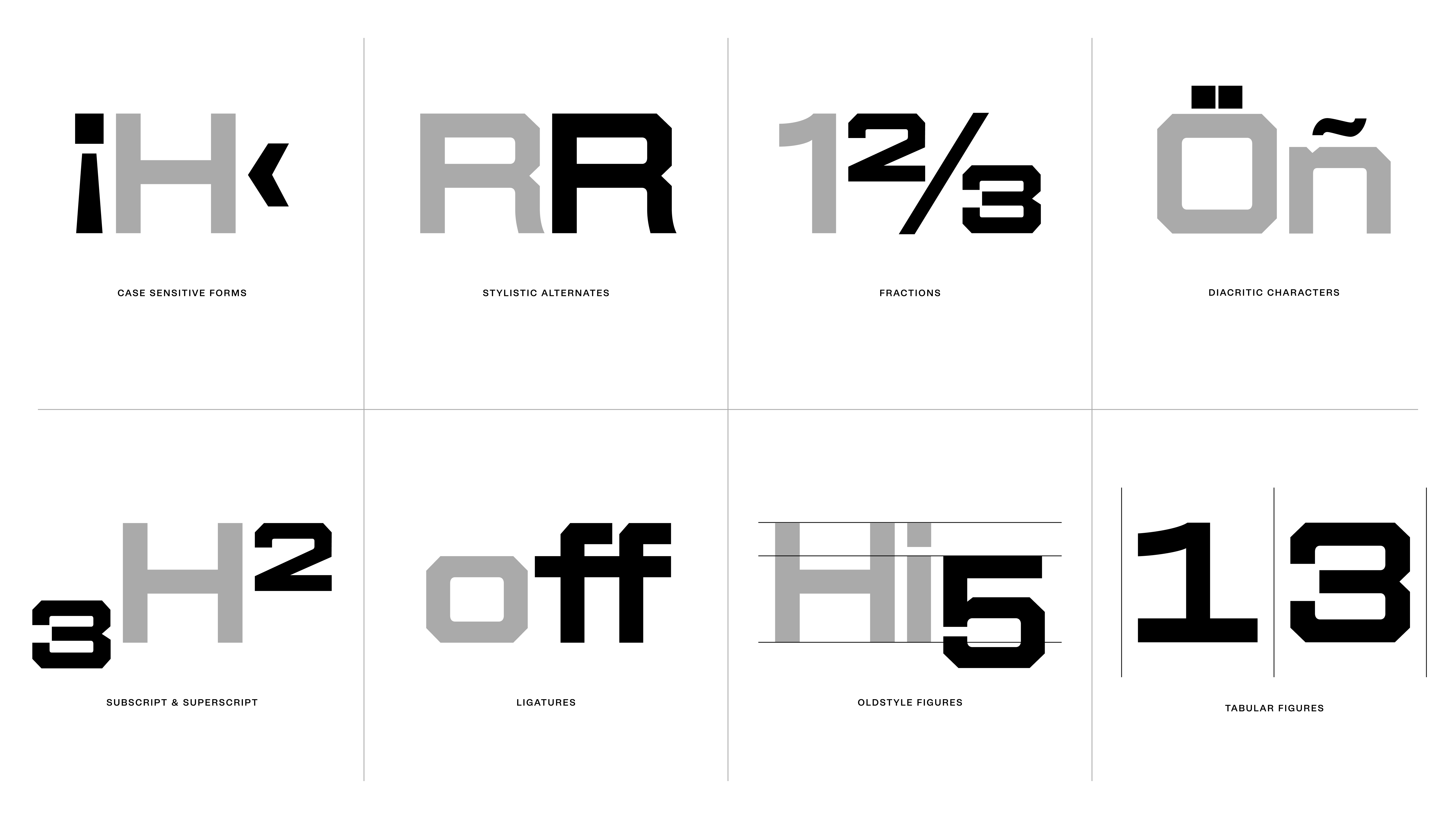 The AAA Collection comes in three different widths: Condensed, Normal, and Expanded, each with nine weights ranging from Thin to Black. Additionally, it includes Display versions with super-tight tracking, optimized for bold display settings at any scale. And with a rich set of stylistic alternates, AAA offers extensive options for shaping its overall expression within a cohesive system.