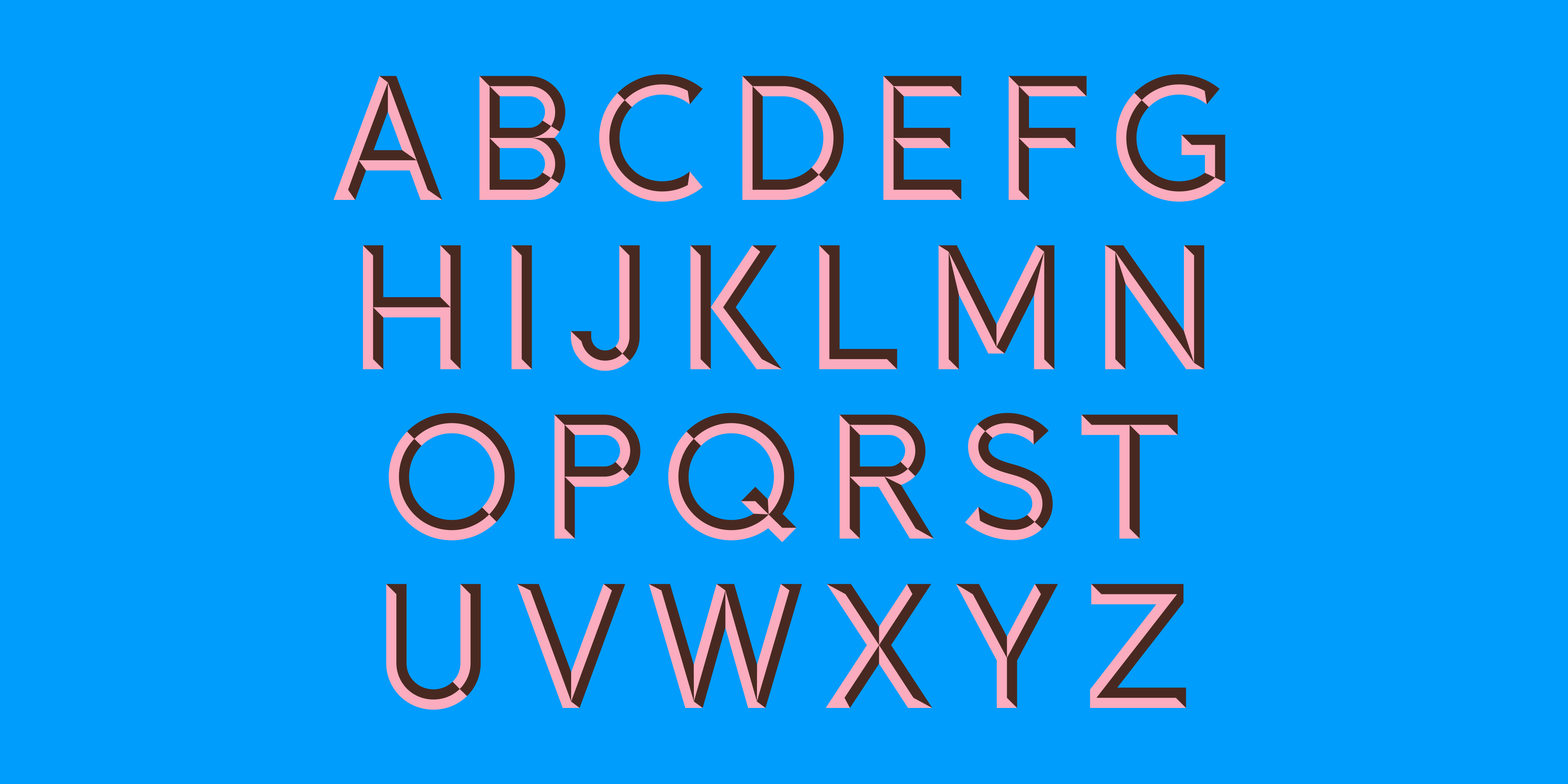 FAUX is a three-dimensional, all caps display typeface inspired by old stone carving and engraving techniques, telling the story of superior and pretentious Baroque expressions with its decadent marbling technique. FAUX Orient and FAUX Occident represent two parts of the same typeface, with each named after the way in which the light falls onto the surface of the carvings. By placing FAUX Orient on top of FAUX Occident, you are able to form fully outlined glyphs. Also, to achieve a more playful expression, you can also use both FAUX Orient and Occident in two different colours.