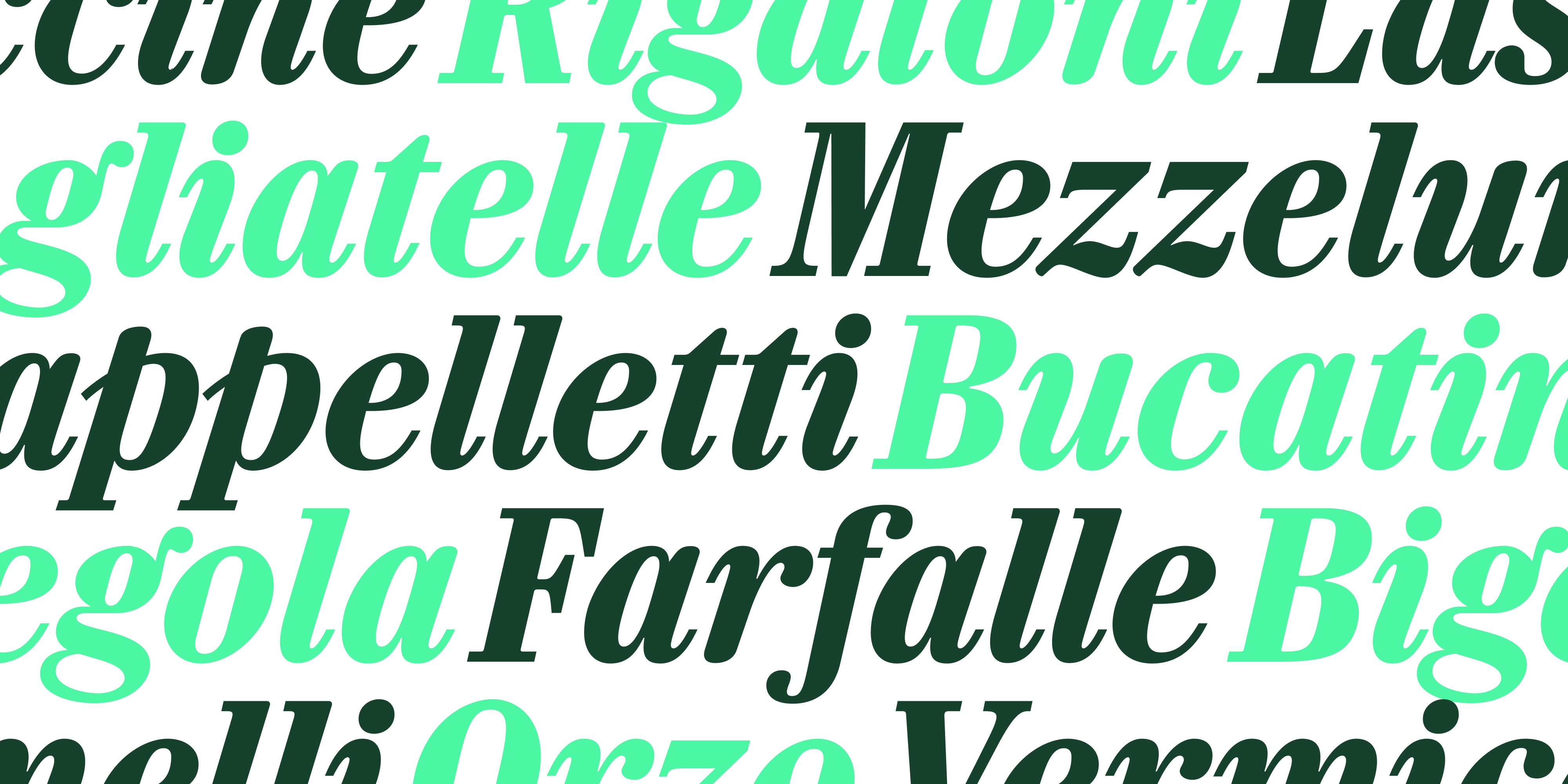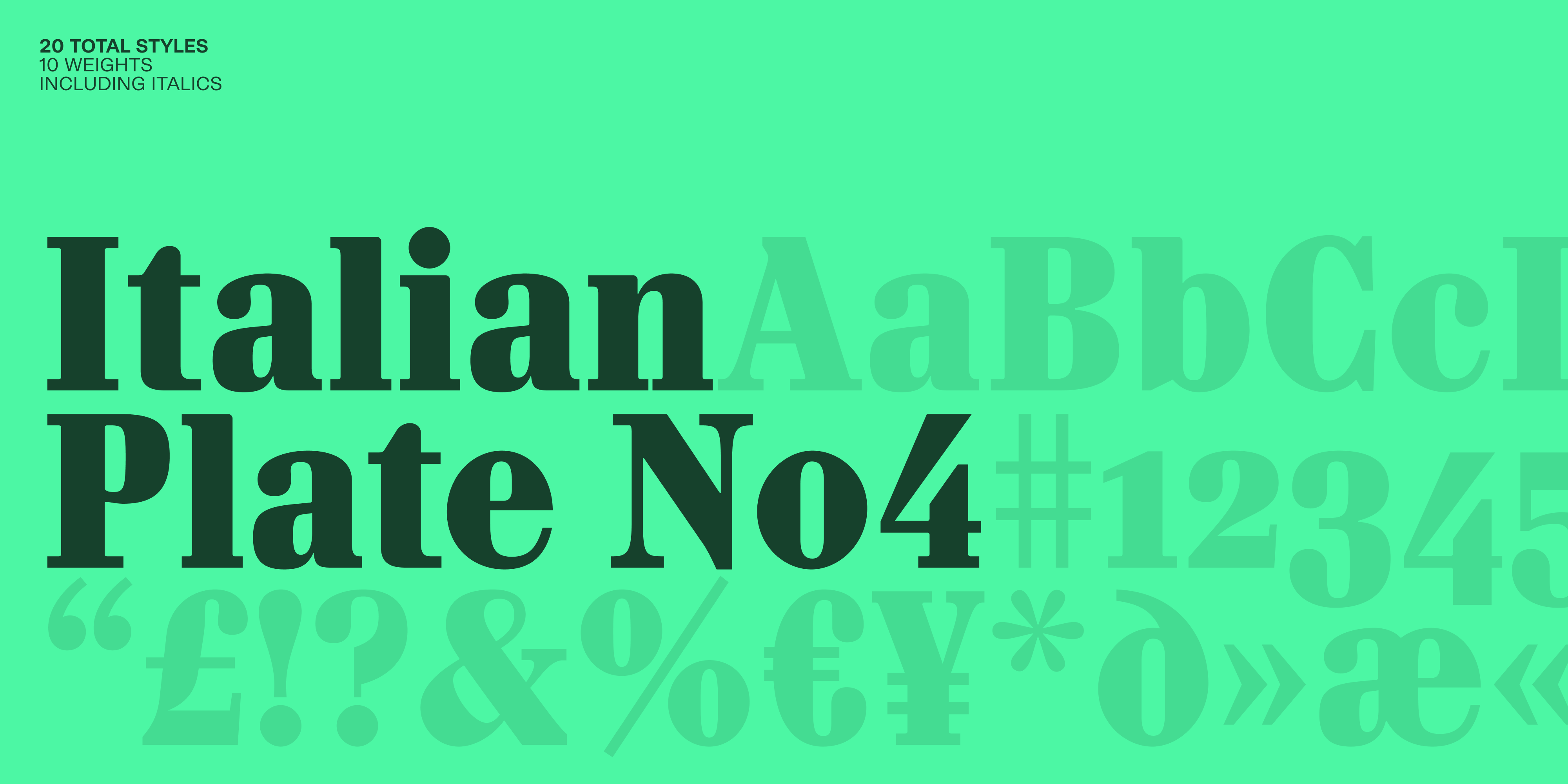 A high contrast neo classic serif, No 4 design is a classic, oval-shaped Didot style, with a high contrast between the thick and thin strokes - along with distinctive and triangular spurs. The accompanying italics have a smooth and neat flow - especially visible in the lowercase letters, that have a very cursive expression that distinguish the italic from the roman.