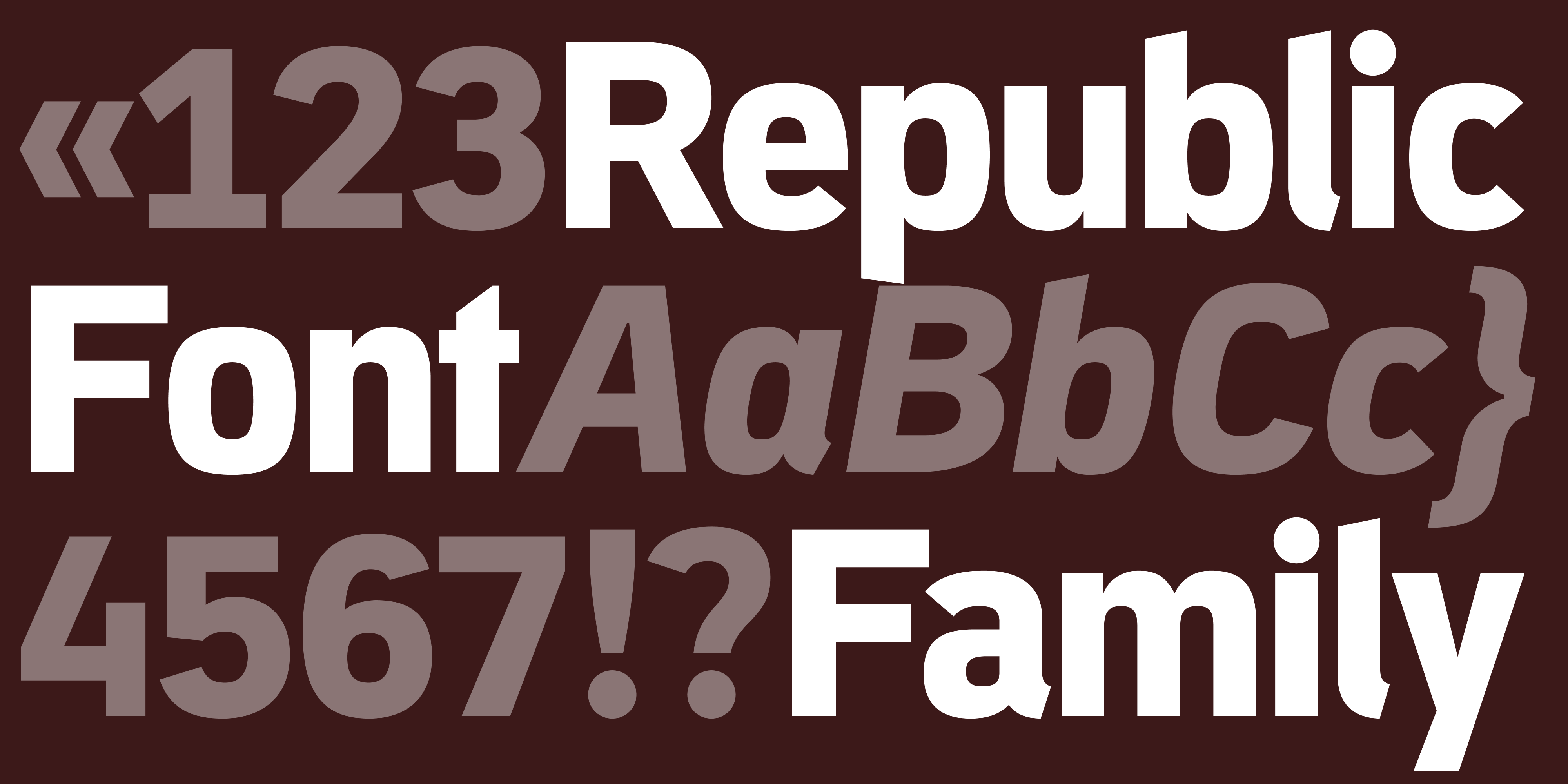 Republic is a gothic grotesque with a straight and confident look. The width is slightly condensed, the x-height tall and the spacing tight which save space and gives it a solid and convincing tone of voice. Even though the texture is tight and rather black the legibility is maintained thanks to the open bowls that also narrows when joining the stem. It can therefore serve for headlines as well as bodytext where the space is limited, but still has high expectations to legibility. The personality is not least formed by the angled ascender tip on lower case “b”, “t”, “l”, “d” and “h” as well as details such as the upright ear on the double story “g”. This creates a balance in the overall texture where the typeface strives upwards but remain grounded.