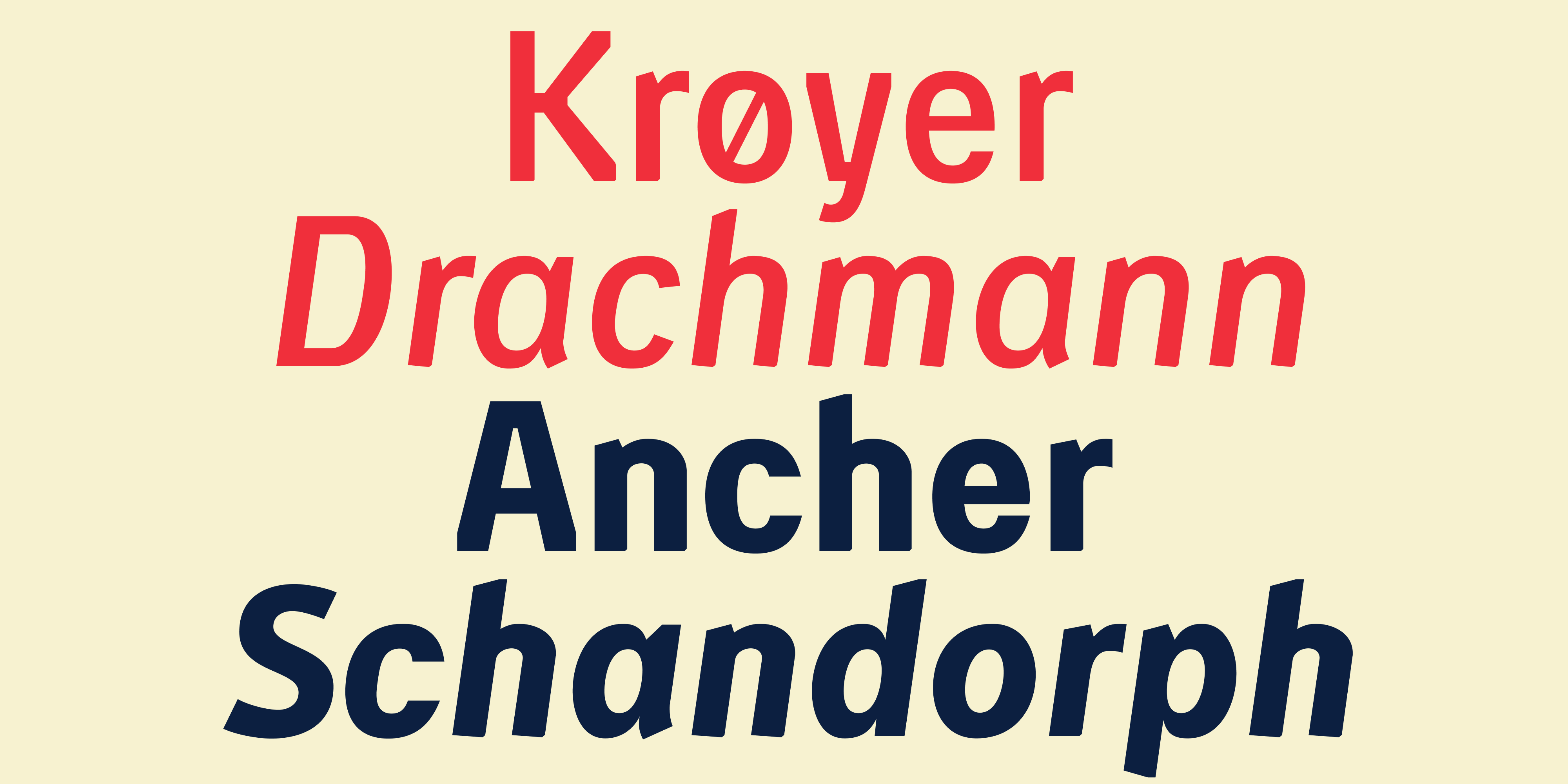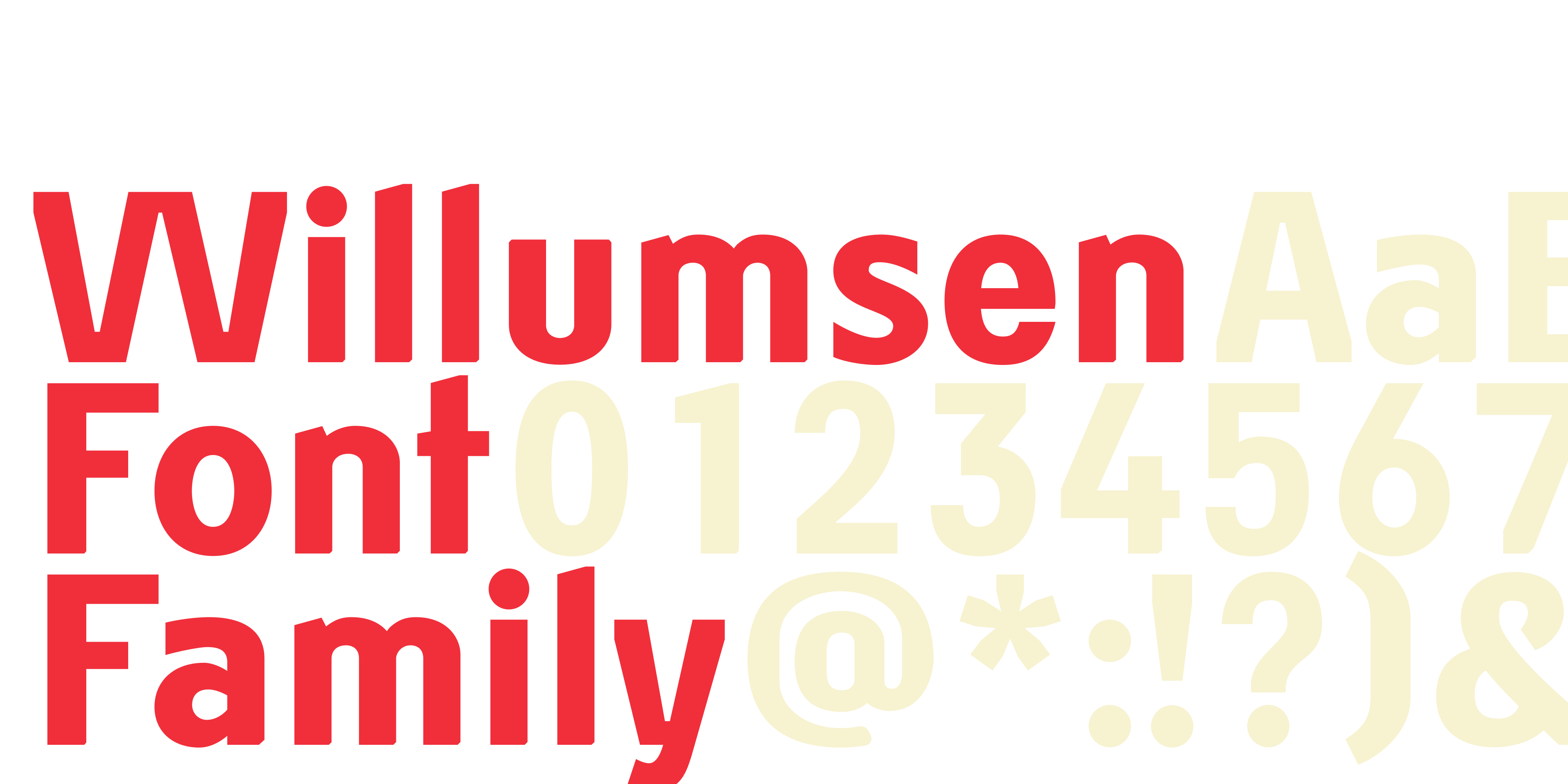 Willumsen is an easy and flowing typeface that absorbs details from the danish art and architecture style lead by pioneer J.F Willumsen in the beginning of the 20th century. Wavy and organic forms weave gently together with Danish type traditions of ink drops, introduced by Knud W. Engelhard, linking the typeface to the modern breakthrough in Danish art. The number of distinguishing details hidden in every character is an invitation to explore its many opportunities.